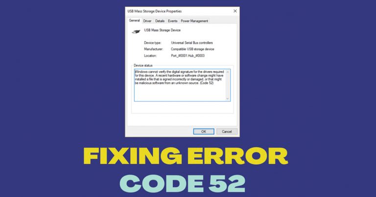 Windows uses Driver Digital Signatures to verify the legitimacy of device drivers. Microsoft requires hardware vendors to verify their drivers before they can be installed on Windows. In the event that any driver is not verified, Windows will display the above-mentioned error code 52.